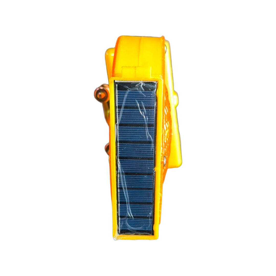 Potencia de 0.05W LED extra light, duración de la batería de 650 a 750 horas . Visibilidad de 500 mts aprox, base plástica y foco policarbonato. Recarga solar
